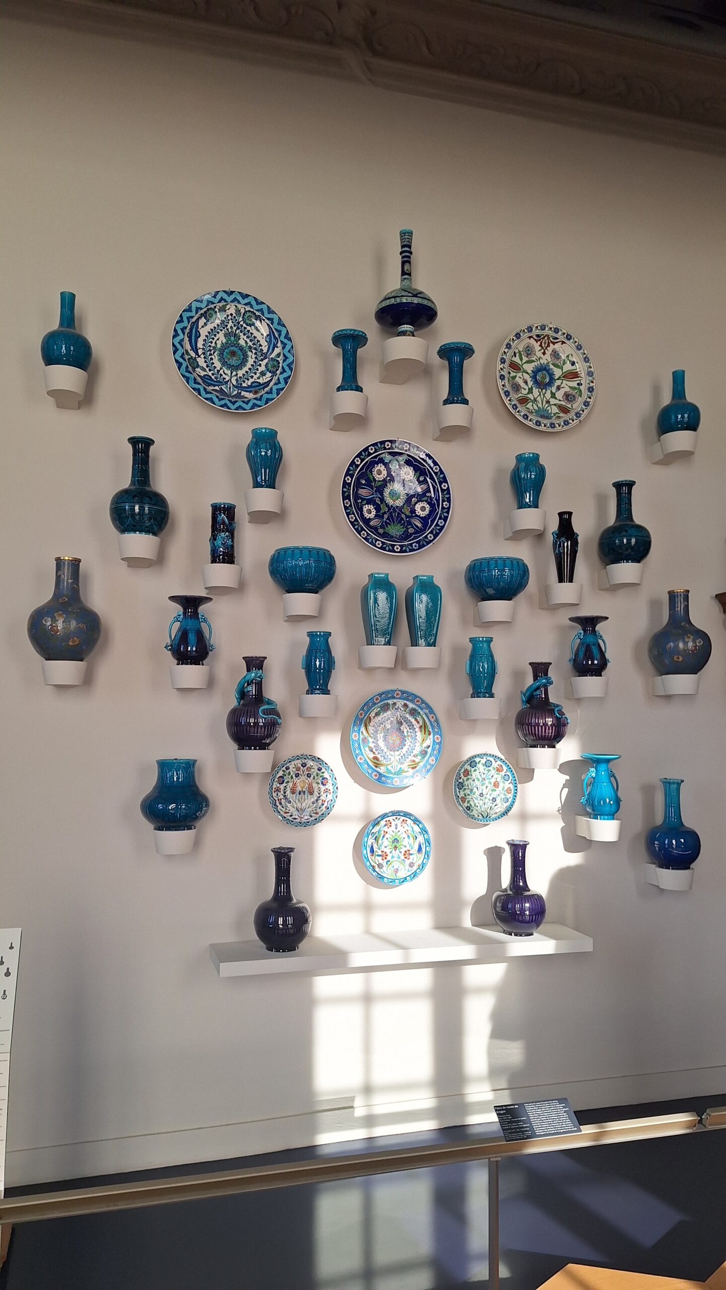 Ce que j’en retiens avant tout, c’est le magnifique mur de poteries. Les murs composés de vaisselle sont une idée que j’imagine très facilement dans un intérieur contemporain : c’est une mise en scène simple à reproduire, qui habille immédiatement l’espace et lui donne du caractère. J’ai trouvé cela sublime, à la fois décoratif et chargé d’histoire.